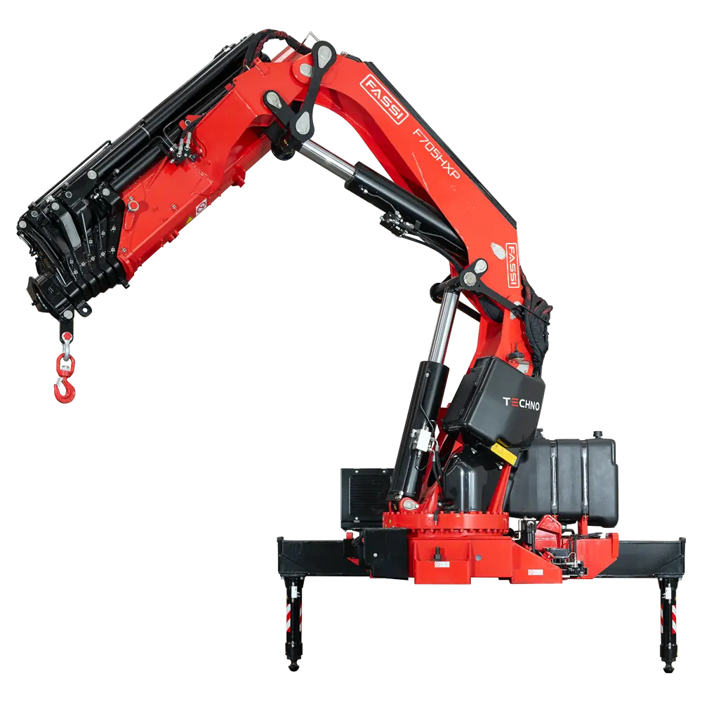 F705 Techno er en kraftig og avansert kran i Fassi sin TECHNO-serie, utviklet for oppdrag som krever høy løftekapasitet, lang rekkevidde og presis kontroll. Med moderne teknologi og robust konstruksjon leverer den pålitelig ytelse selv under krevende forhold, og gir operatøren full kontroll i alle bevegelser.